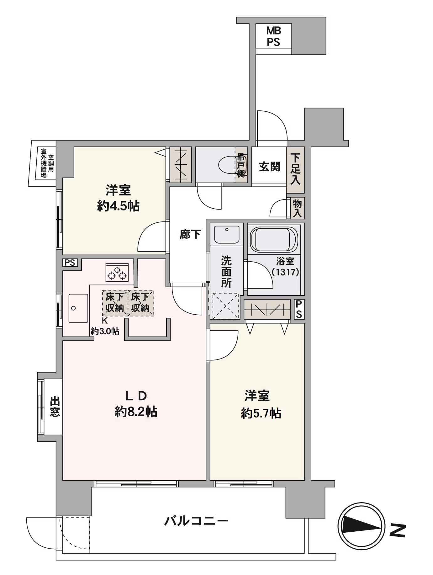 | 専有面積 | 48.9㎡ | バルコニー面積 | 9.54㎡ | 間取り | 2LDK |