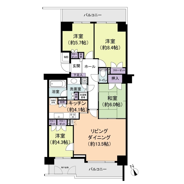 | 専有面積 | 93.05㎡ | バルコニー面積 | 21.22㎡ | 間取り | 4LDK |