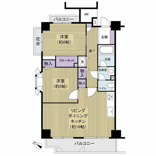 | 専有面積 | 56.12㎡ | バルコニー面積 | 8.06㎡ | 間取り | 2LDK |
