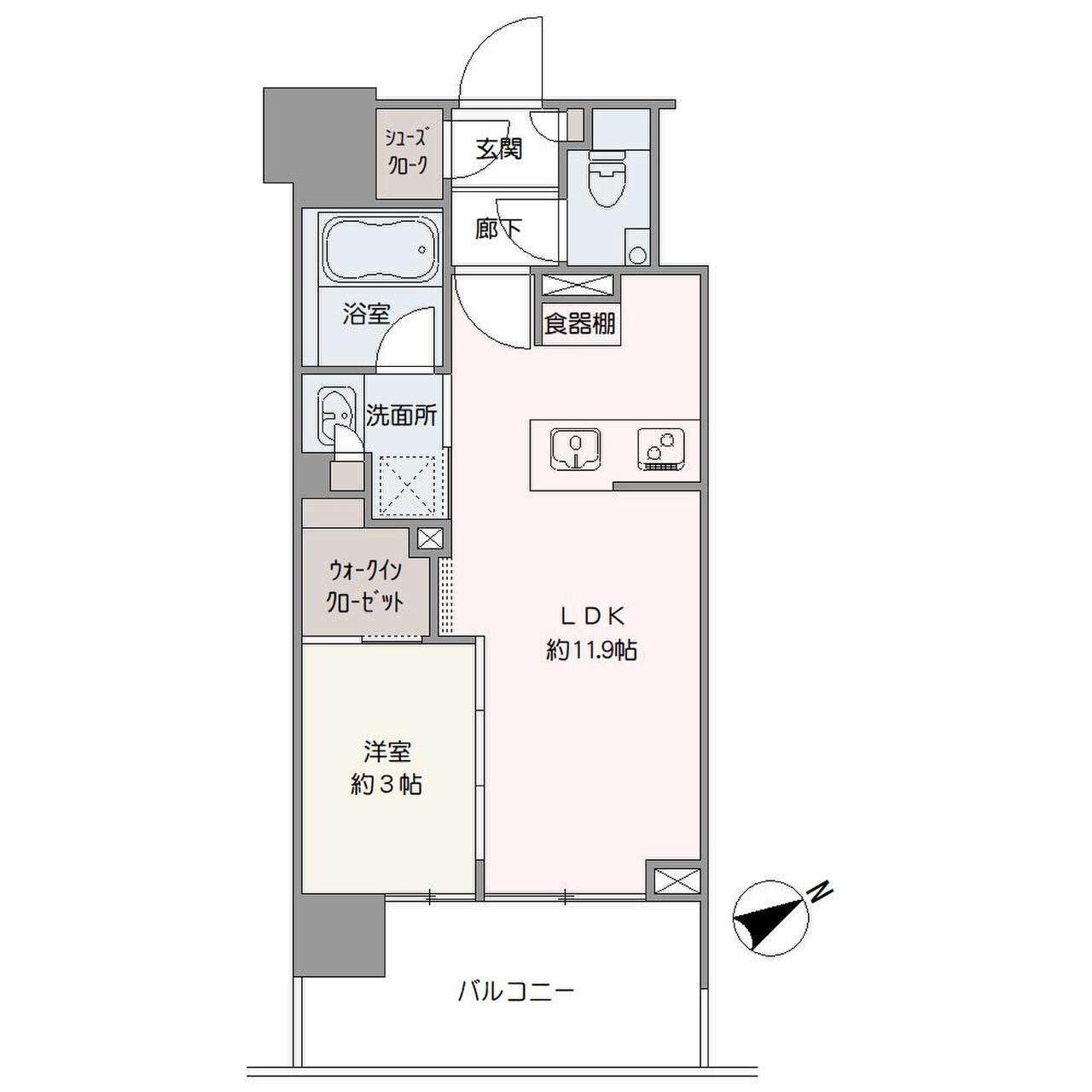 | 専有面積 | 33.16㎡ | バルコニー面積 | 7.66㎡ | 間取り | 1LDK+WIC+SIC |