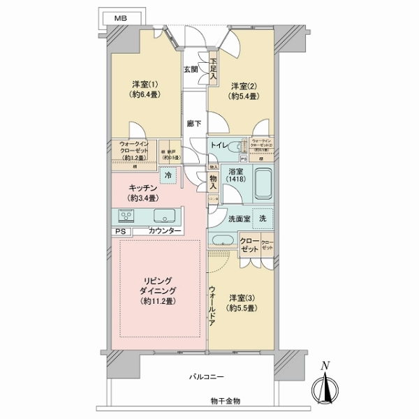 | 専有面積 | 70.41㎡ | バルコニー面積 | 12.2㎡ | 間取り | 3LDK |