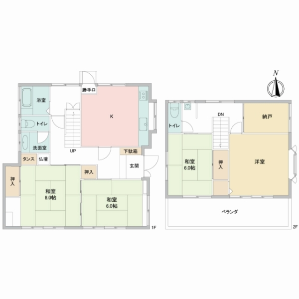 | 土地面積 | 169.56㎡ | 建物面積 | 108.2㎡ | 間取り | 4DK |