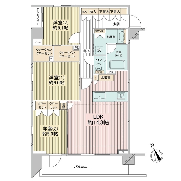 | 専有面積 | 72.67㎡ | バルコニー面積 | 9.54㎡ | 間取り | 3LDK |