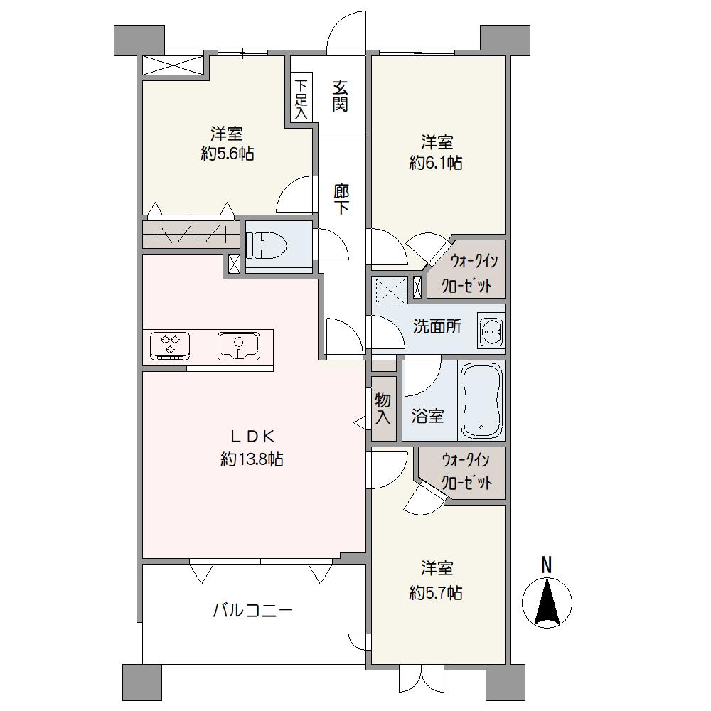 | 専有面積 | 71.1㎡ | バルコニー面積 | 8.4㎡ | 間取り | 3LDK |