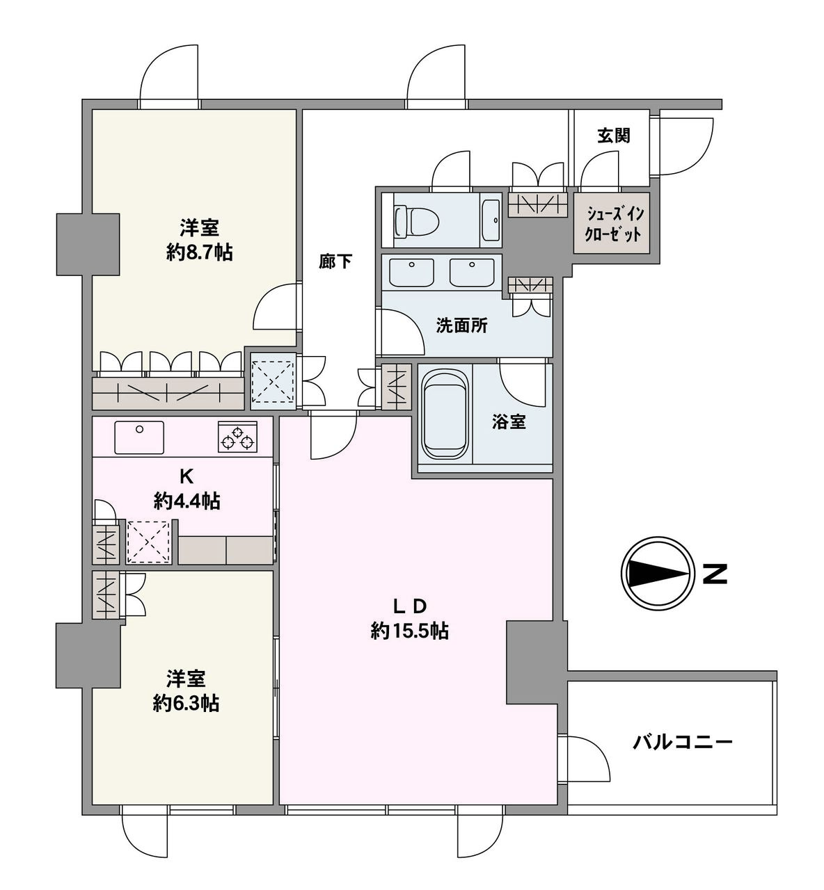 | 専有面積 | 88.61㎡ | バルコニー面積 | 7.21㎡ | 間取り | 2LDKSIC |