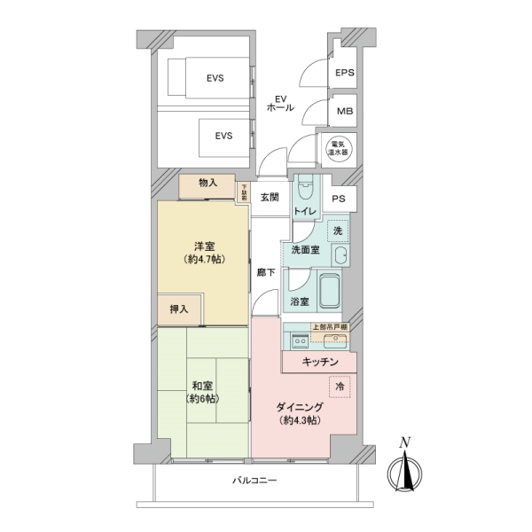 | 専有面積 | 45.7㎡ | バルコニー面積 | 6.72㎡ | 間取り | 2DK |