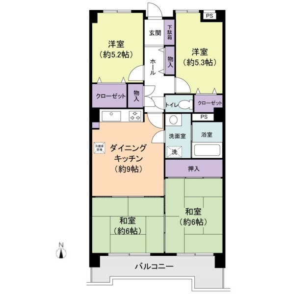 | 専有面積 | 70.98㎡ | バルコニー面積 | 9.07㎡ | 間取り | 4DK |