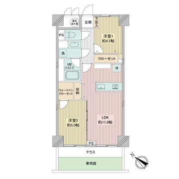 - 2LDK+2ウォークインクローゼット+シューズインクローゼット/南
