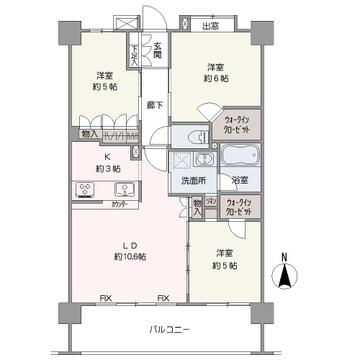 - 3LDK+2ウォークインクローゼット/南