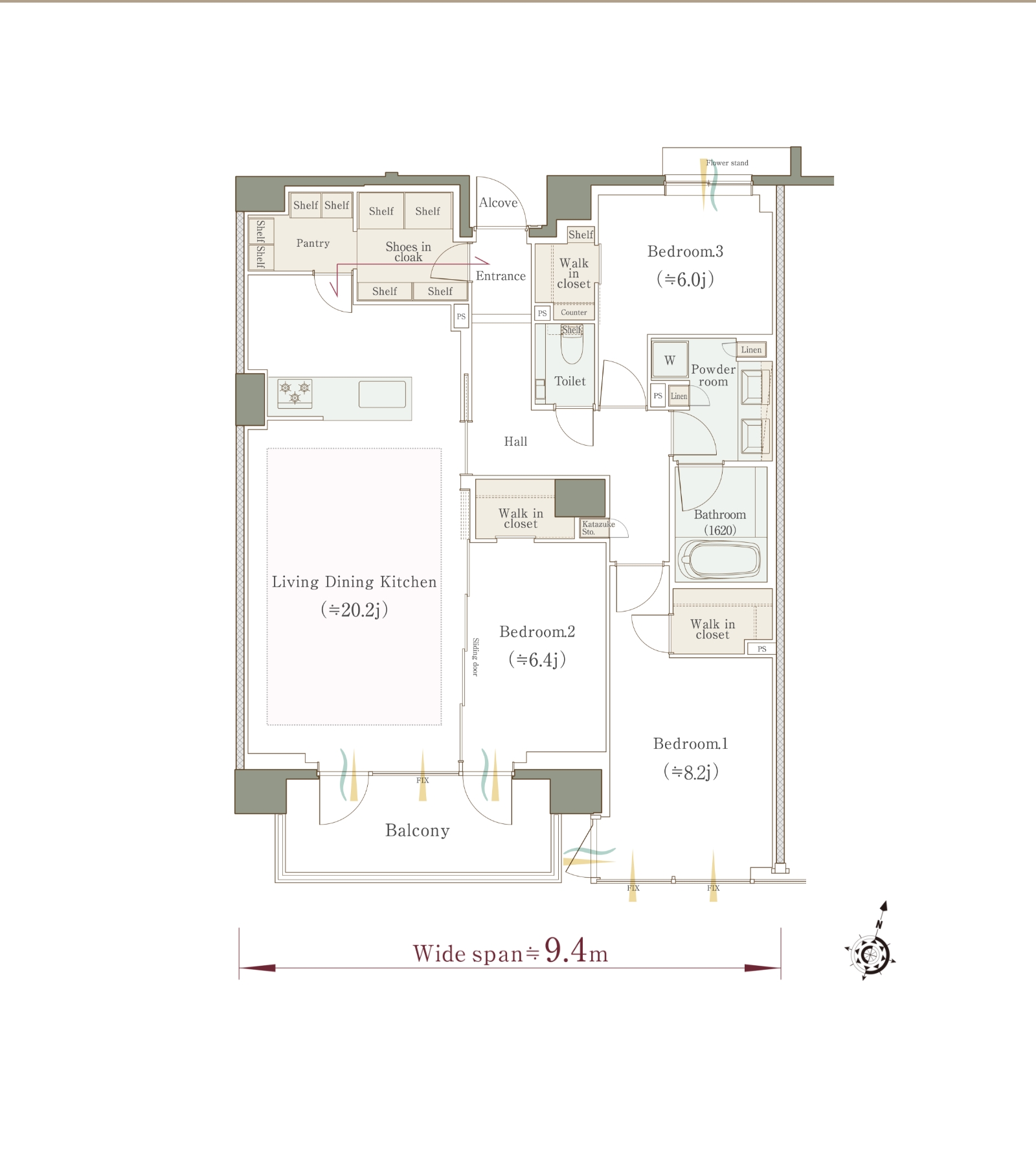 ※ワイドスパンとは、バルコニー⾯の開⼝部が7.0m以上の住⼾を表現しています。