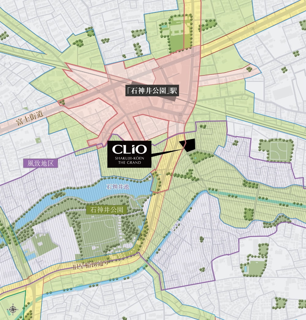 本物件は風致地区に位置し、東京都内では14箇所、全体の約1.63%※1にあたる希少なエリアに限られています。