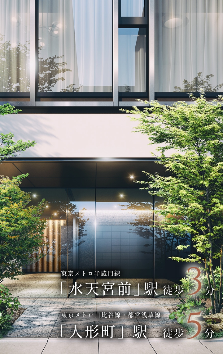 都心の利便を手中にしながら、今なお江戸の情緒が息づく唯一無二の地──「中央区日本橋人形町」。歴史と文化を受け継ぐこの街に、新たな邸宅が誕生します。東京駅1.5km圏、4駅5路線※1を自在に使いこなす軽快なアクセスが、都心の躍動と文化の薫りに満ちた上質な日常を紡ぎます。