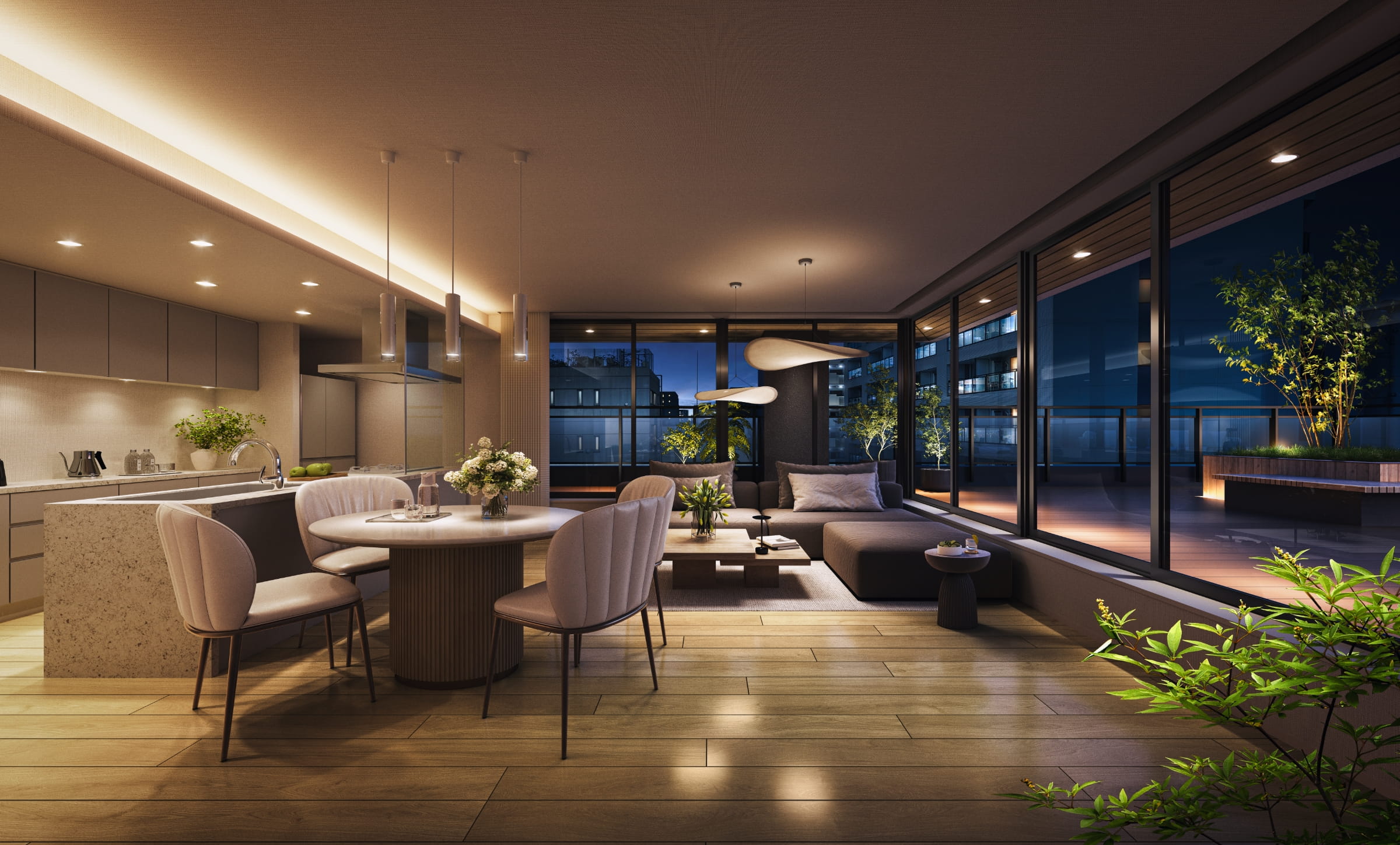 リビング・ダイニング・キッチン完成予想図(Fタイプ/有償設計変更プラン)