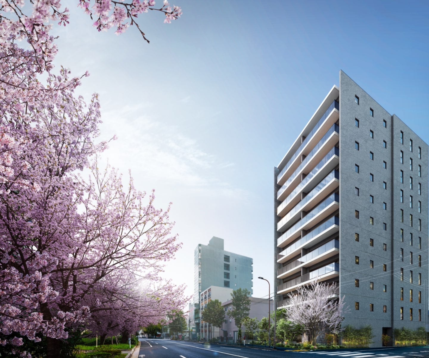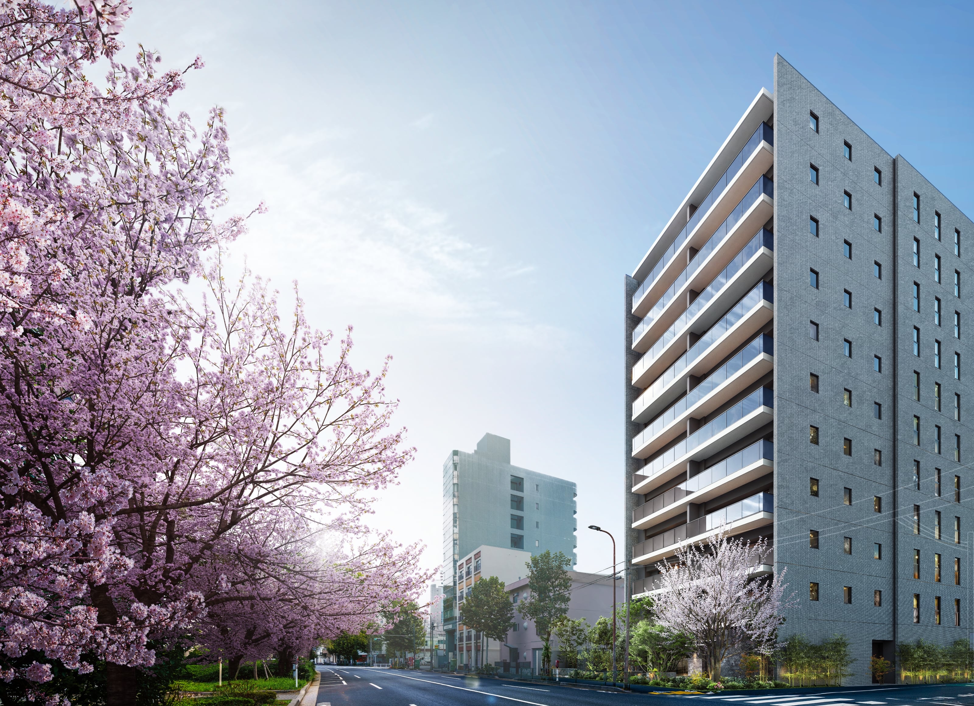 桜並木と調和し、街に華やぎを添える建築デザイン。