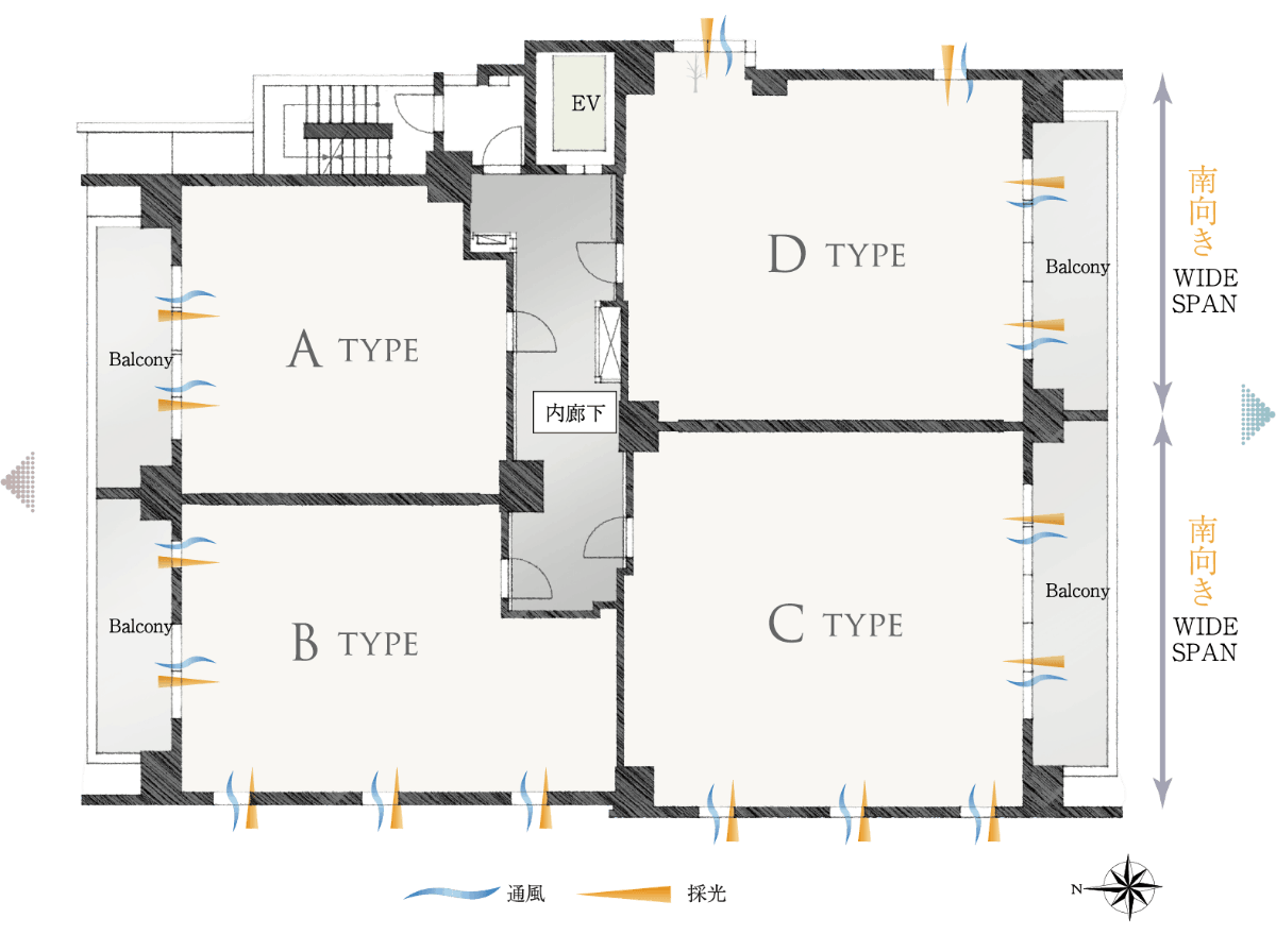 さらに、ワイドスパンで採光豊かな南側住戸もあるなど心地よいプライベート空間を創出します。
