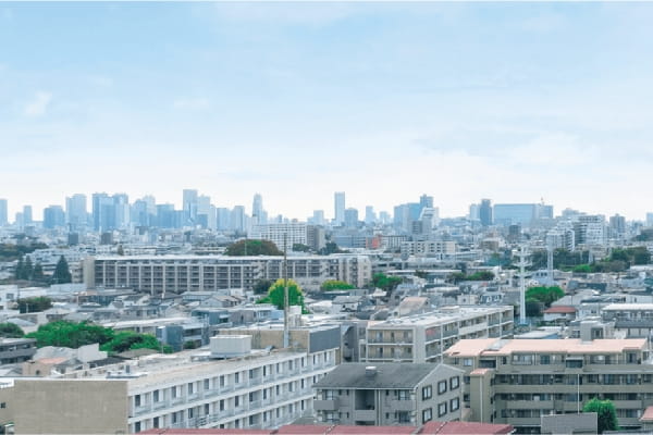 陽光が差し込む都心方面の眺望。