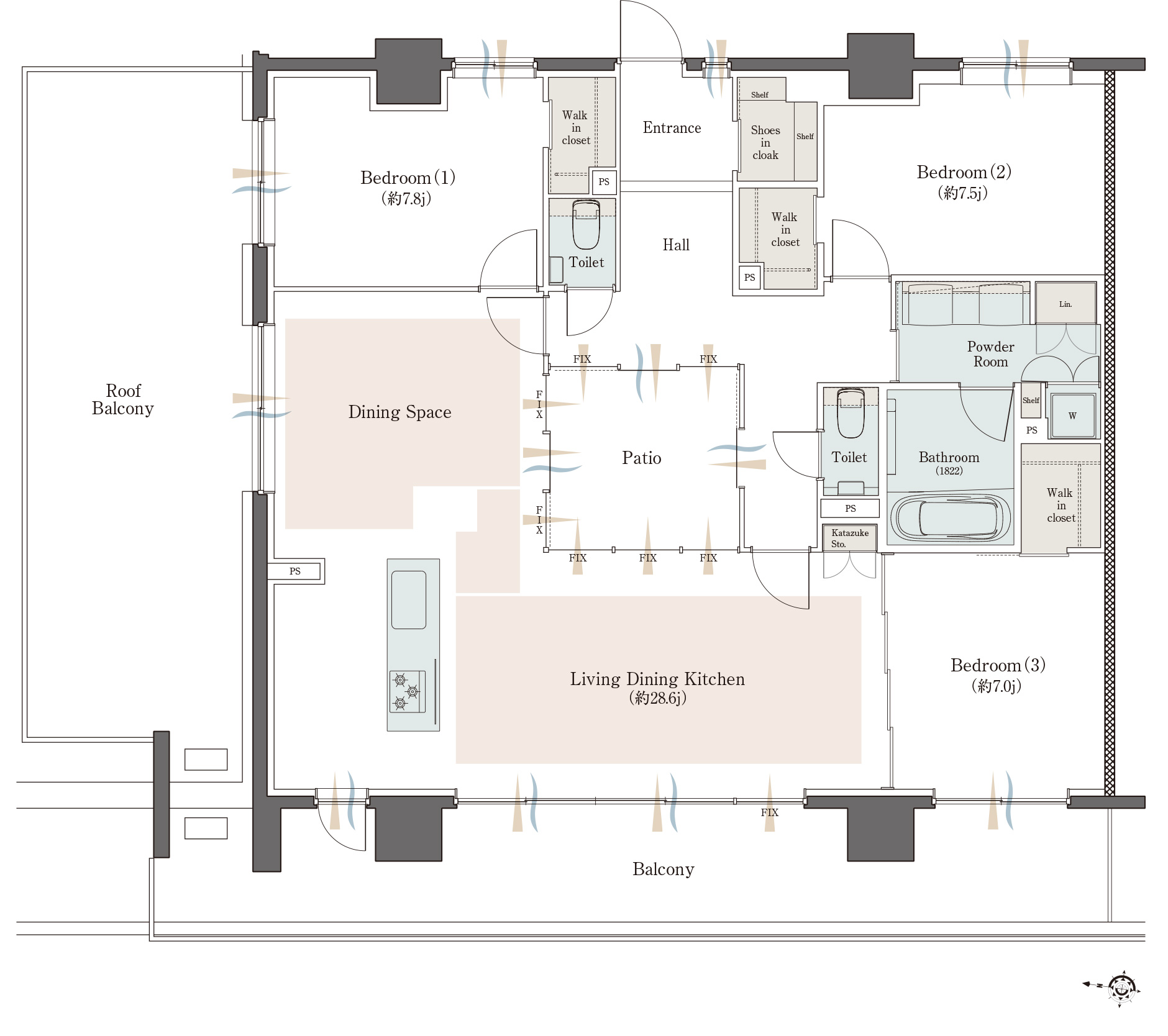 WTC:ウォークスルークローゼット WIC:ウォークインクローゼット SIC:シューズインクローク