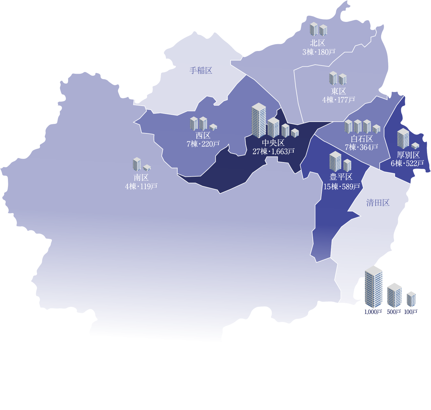 北海道ではこれまでに83棟・3,834戸の供給実績があります。