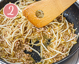 ひき肉ともやしを炒めたら、あとは合わせだれを絡めるだけの簡単時短料理!