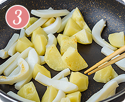 じゃがいもはレンジで加熱してから炒めることでさらに時短になりますよ♪