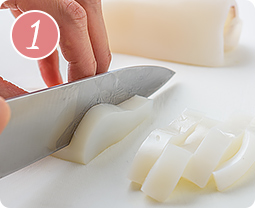 スミイカ(コウイカ)は、5〜6mm幅に切る。