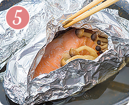 アルミホイルを少し開けて、鮭が白っぽく変わったらできあがり。