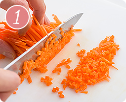 玉ねぎとにんじんはみじん切りにする。