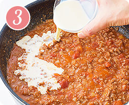 ★を加え、ヘラなどで混ぜながら2〜3分煮る。ヘラで混ぜたときにとろっとした感じになったら、☆を加えてサッと煮たら火を止める。