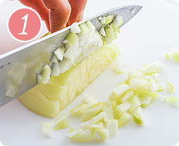 玉ねぎをみじん切りにする
