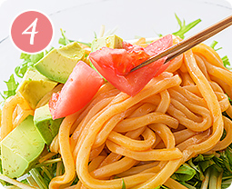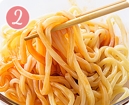 ボウルに★ を合わせ、【1】のうどんを入れてよく混ぜ合わせる。