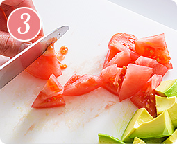 アボカドは変色しやすいため、作る直前に切りましょう。