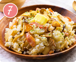 噛むほどにきのこの旨味が感じられる「混ぜご飯」。