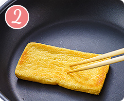 油揚げは油をひかずにフライパンで焼くことで、カリカリとした食感を楽しむことができます!