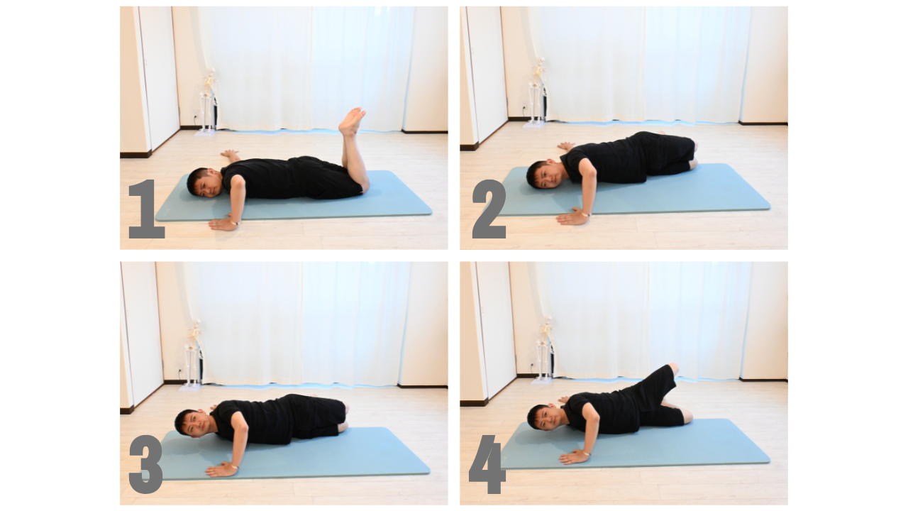 3~4の動作を1回として、左右10回ずつ行いましょう。