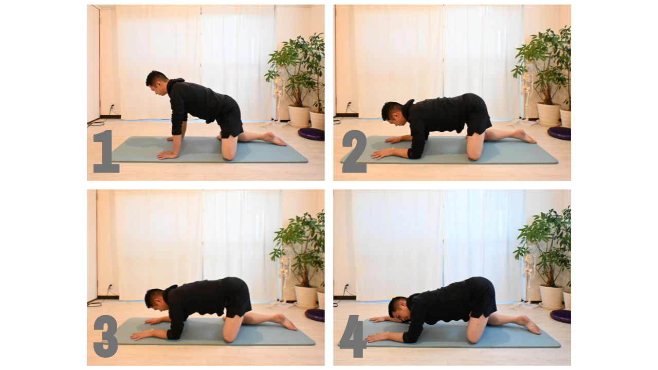 4.3の姿勢のまま、左右の肘と膝をつけます。