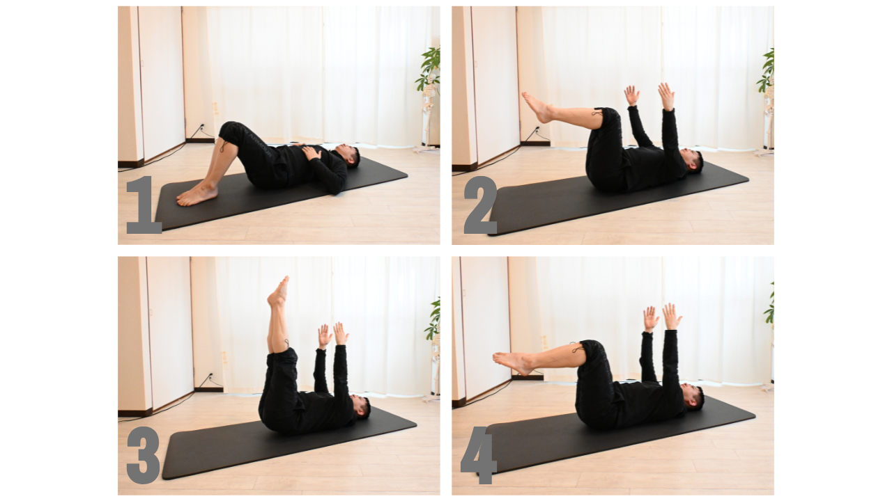 4の姿勢を1回として左右3~5セットずつ行いましょう。