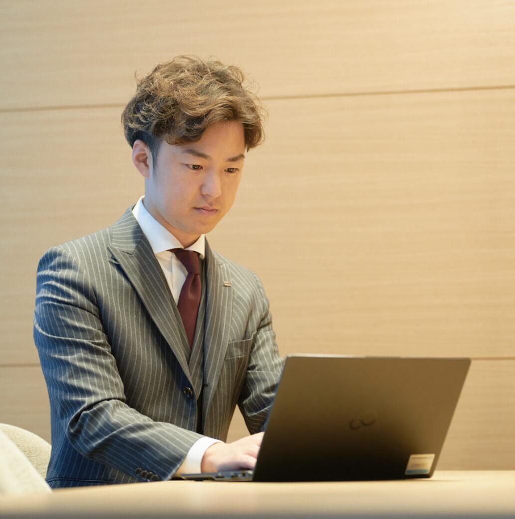- 就活ではデベロッパーにこだわらずエンドユーザー向けのビジネスを軸に、大きな金額を動かす仕事に惹かれていました。扱う金額が大きいほど、お客様の人生に与える影響も大きくなる。その責任感こそが、人生を豊かにするお手伝いにつながると感じたんです。数ある企業の中でも当社は、社員同士の距離が驚くほど近い。この環境なら大きな仕事にも自分らしく向き合えると感じて入社を決めました。