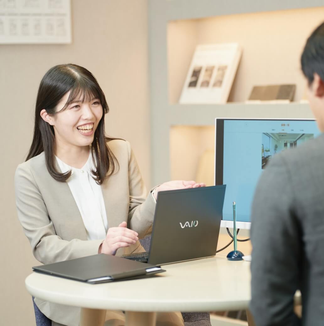 - 仲介事業部池袋店にて不動産売買の仲介営業を担当しています。不動産を売りたい方と買いたい方を結ぶ架け橋のような役割です。売主様には売却方法をご提案し、買主様には物件案内から住宅ローン、契約・決済まで一貫してサポートします。双方の想いを汲み取りながらスムーズに進める力が必要ですが、幅広い知識が身に付くため日々成長を実感しながら働くことができています。